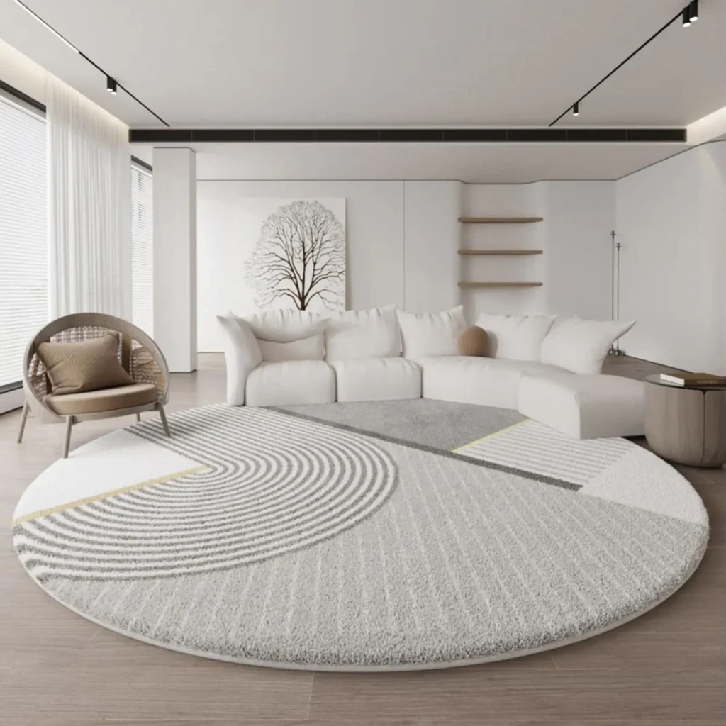 Works as decorative circle carpets for interior design by adding a focal point that improves room balance and overall layout.